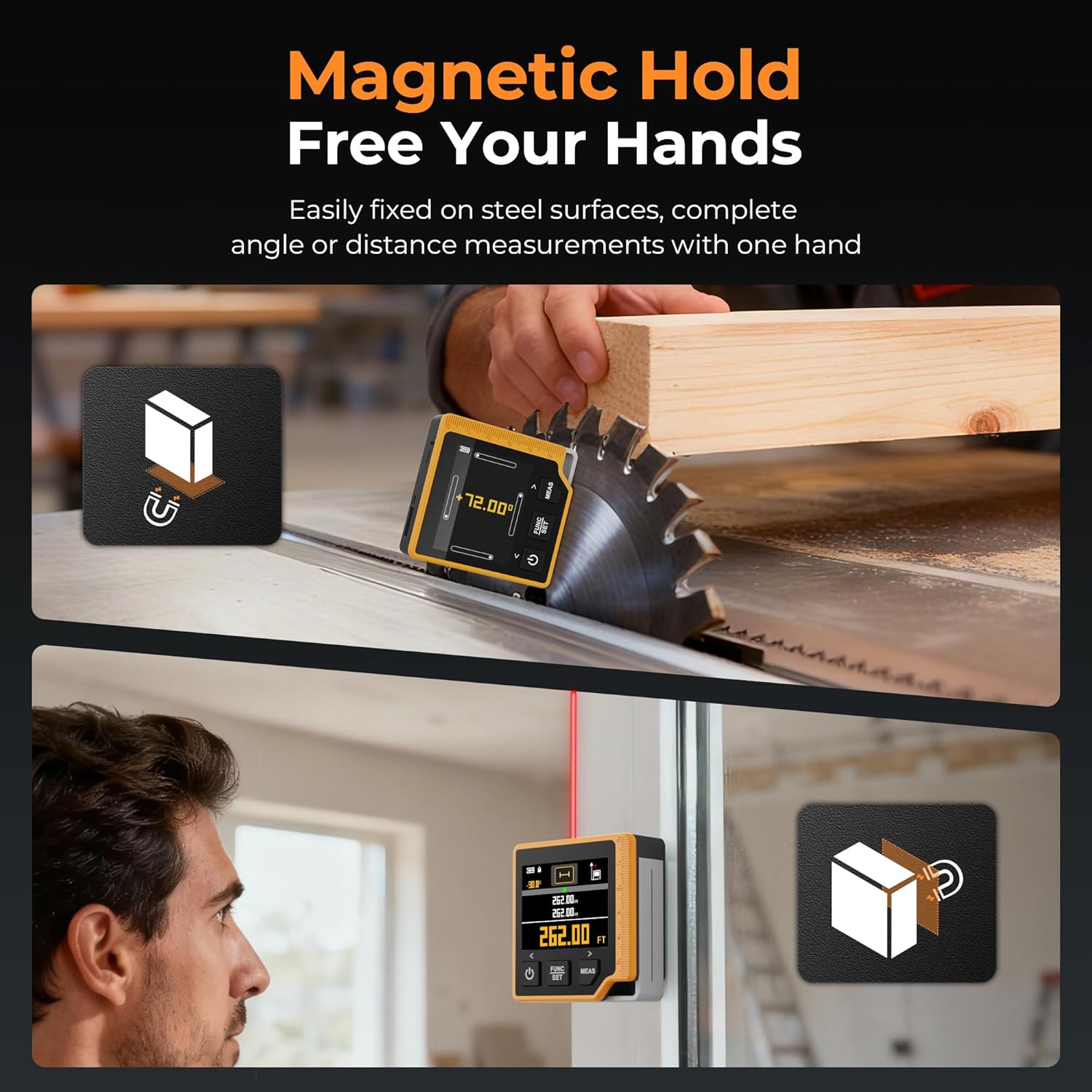 - 3-in-1 Laser Measuring Tool for Professionals: Combining a laser measure (up to 262ft), digital angle finder, and digital level, CIGMAN all-in-one laser measurement tool achieves high precision with ±1/16 inch accuracy and fast 0.3-second readings. With 6 unit options (m/in/ft/ft+in/cm/mm) and 2 measuring reference points, it’s a versatile choice for builders, engineers, interior designers, decorators, construction supervisor, real estate agent and DIY enthusiast
