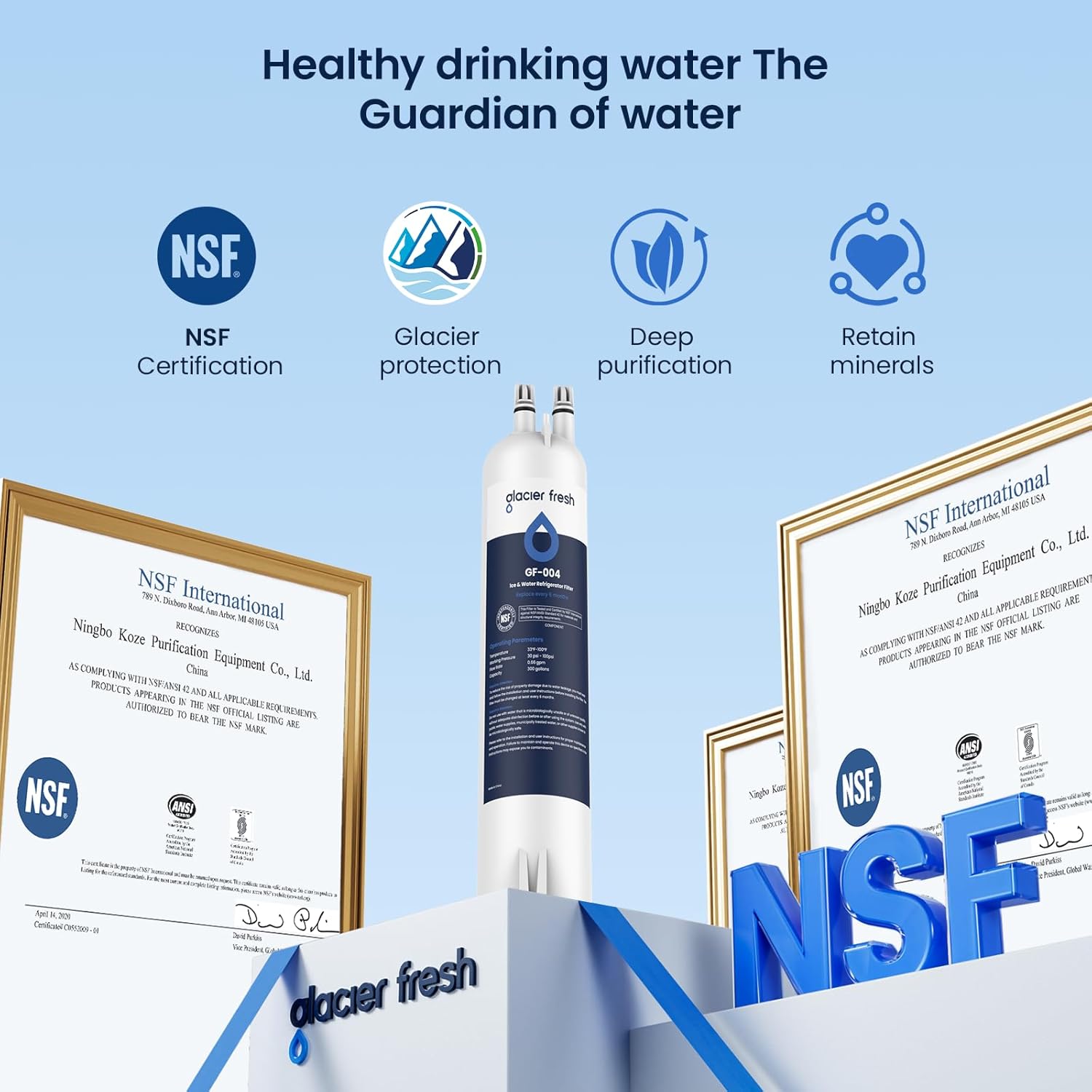 - Provide Fresh Water: GLACIER FRESH Replacement Water Refrigerator Filter can provide you with refreshing, delicious, and healthy water so that you can feel the taste of pure water no matter your drink, cook, brew coffee, or brew tea. Protect the health of you and your family and improve the happiness of life.