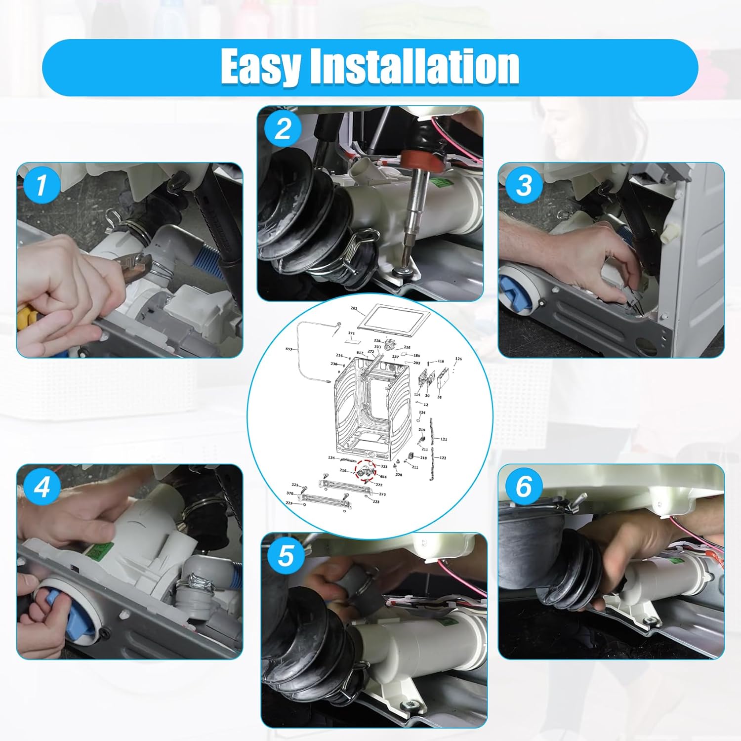 - 【Solve Problems】: WH11X29539 Drain pump assembly is responsible for removing water from the washing machine tub at the end of each wash cycle and trapping any debris or foreign objects that may clog the drainage system. Replacement pump can help you solve the following situations: washer not draining properly, leaving water in the drum at the end of the cycle; unusual noises during the drain cycle, such as grinding or humming sounds; visible leaks or drips around the pump or filter area.