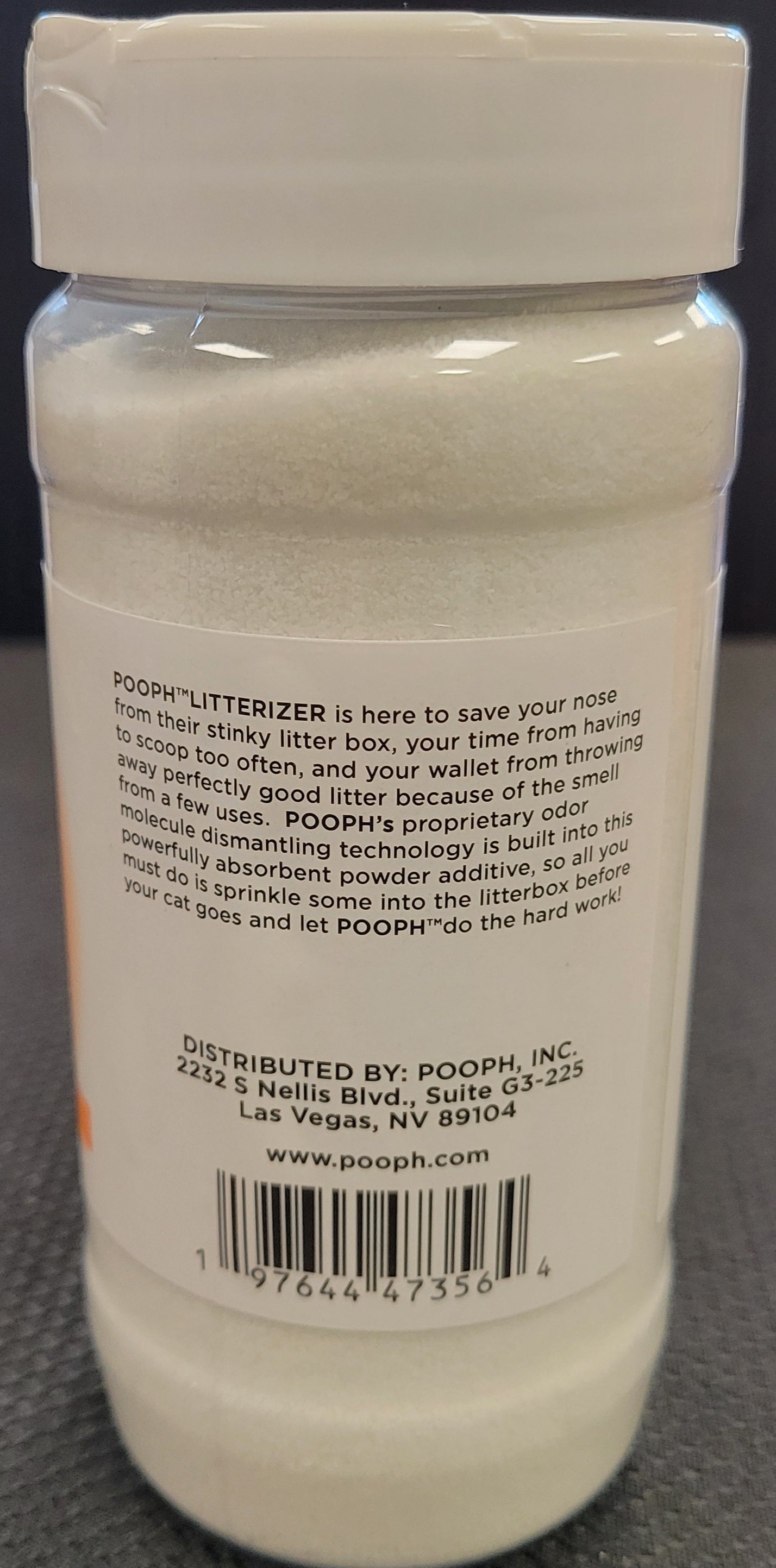 Love your cat, but can't stand the stink from the litter box? POOPH LITTERIZER is the litterbox CIVILIZER. Save your nose from their stinky litter box, your time from having to scoop too often, and your wallet from throwing away perfectly good litter because of the stink from a few uses. POOPH's proprietary odor molecule dismantling technology is built into this powerfully absorbent powder additive, so all you need to do is sprinkle some into the litterbox before your cat goes and let POOPH do the work!