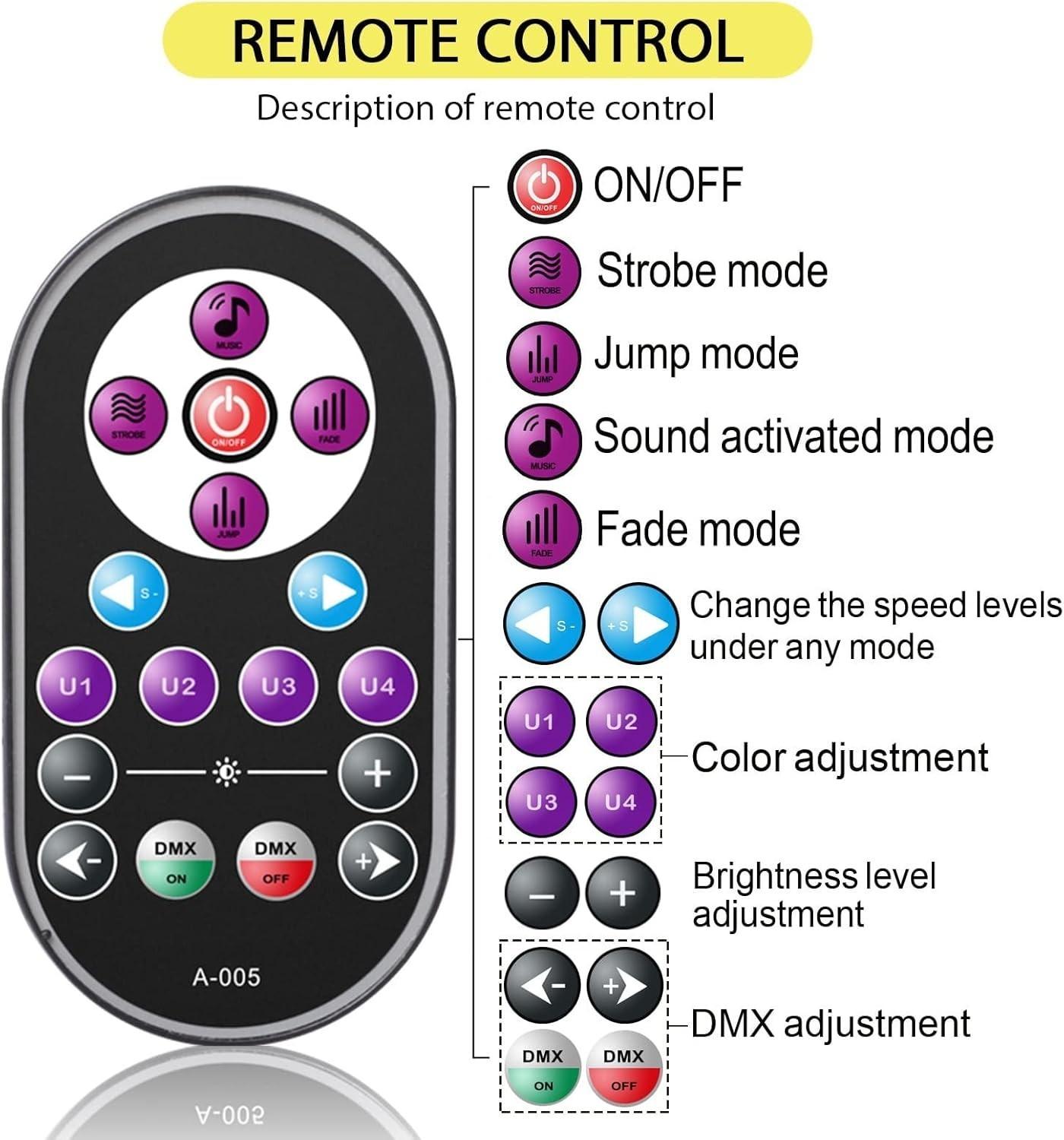 - FLEXIBLE DESIGN: This black light can be easily controlled by remote and any kinds of DMX controllers The lights flicker and change patterns with the beat of the music).