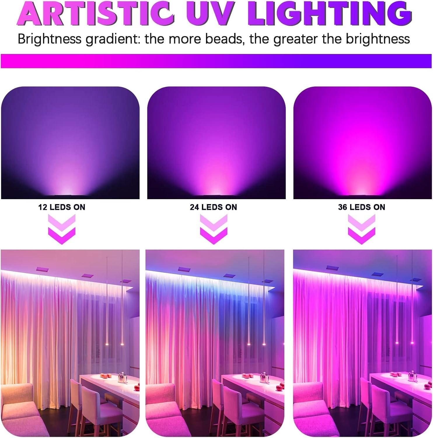 - EXCELLENT HIGH POWER UV BLACKLIGHT: 36 LED, premium quality and powerful ultraviolet led, wavelength: 395-400nm, UVA level.
